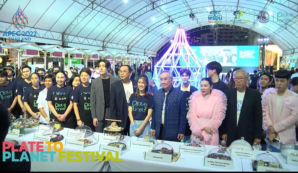 H.E. Mr. Don Pramudwinai, Deputy Prime Minister and Minister of Foreign Affairs chairs the opening ceremony of Plate to Planet Festival in front of the Central World Plaza shopping mall. The event aims to promote the last 21 best Thai dishes in the final round of the APEC Future Food for Sustainability competition. The winning team will have their dishes served to leaders at the 2022 APEC Economic Leaders’ Week next month.