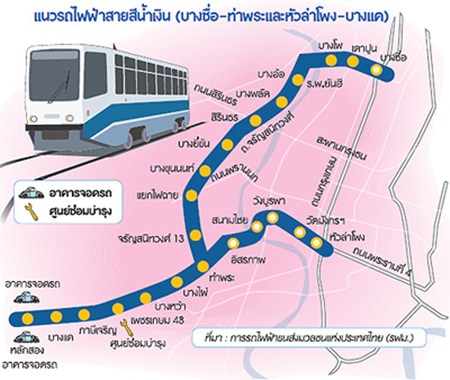 The Blue Line electric train extension project is under the strategy to develop the country’s transportation infrastructure for the years 2015-2022. The strategy has been approved by the National Council for Peace and Order (NCPO).