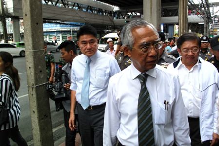 BANGKOK, 9 July 2014 – Bangkok Metropolitan Administration officials on Wednesday inspected pedestrian walkways on Ramkhamheang Road, as the regulations on footpath reorganization has come into effect.