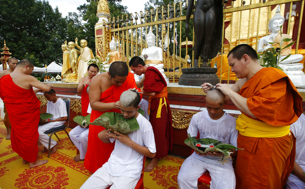 Buddhist males in Thailand are traditionally expected to enter the monkhood, often as novices, at some point in their lives to show gratitude, often toward their parents for raising them. It’s believed that once a person is ordained they gain merit that is also extended to their parents.