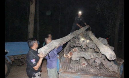 There was no trace of the smugglers themselves, who eluded the authorities, but tips about the hiding place for the illegal logs helped them locate the cache. The forest officials said such places are often near Thai border crossings on the Mekong River, with access for easy transport across the river