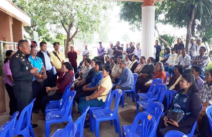 The Deputy Director of the Internal Security Operations Command (ISOC) – Second Army Area Command, Lt. Gen. Dej-udom Nichrat, chaired a meeting with representatives of ISOC, Buri Ram Land Office, the Office of Treasury Department – Buri Ram, the Agricultural Land Reform Office in Buri Ram, the Mayor of Tambon Baan Bua and residents of Baan Bua to discuss the progress of possible solutions to their land ownership problems.