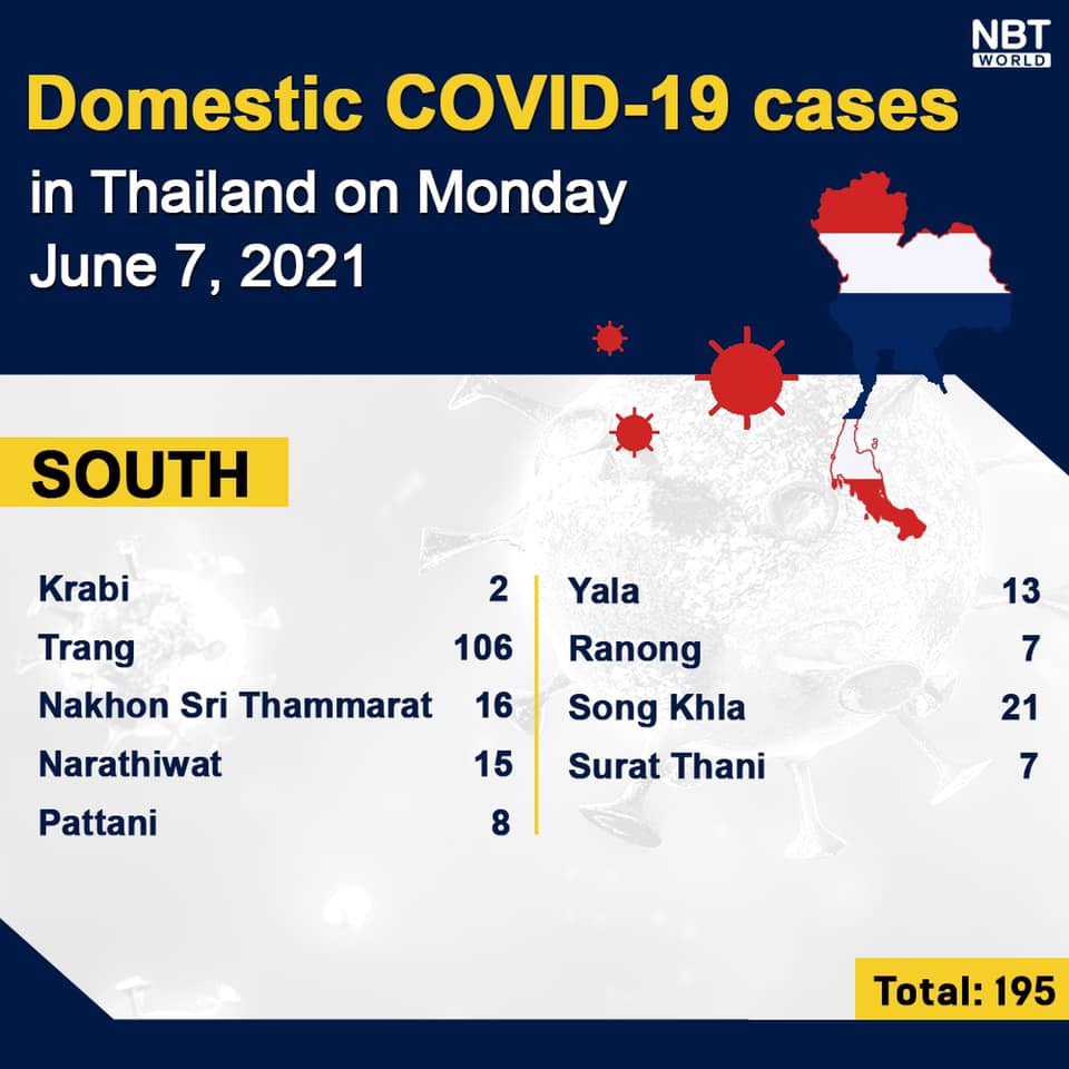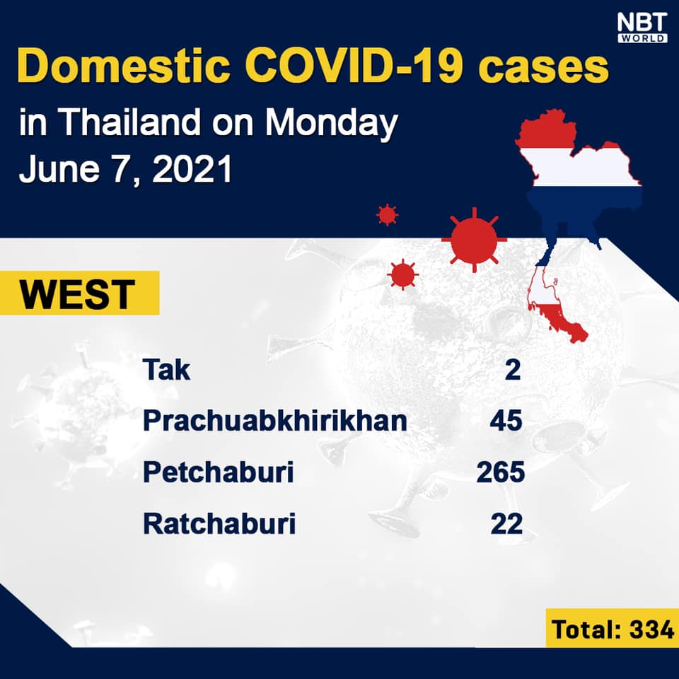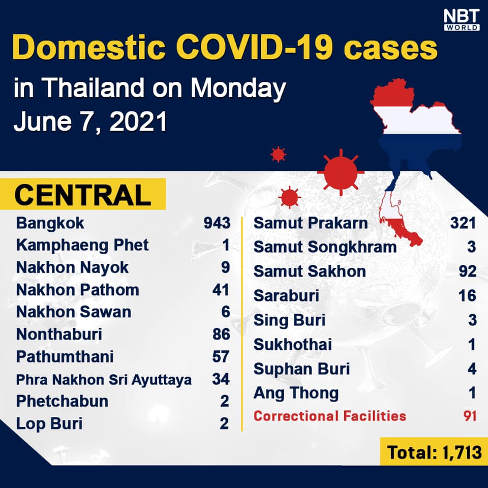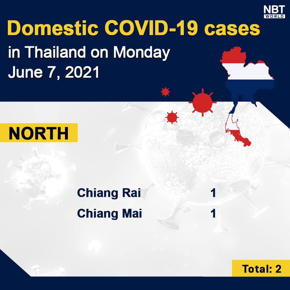 NewsThailandUpdate COVID-19 Chonburi detects 53 new cases while Bangkok logs 943 and Chiang Mai 1 today By Pattaya Mail June 7, 2021 0 1057 Share on Facebook Tweet on Twitter tweet Each province’s daily domestic COVID-19 cases update in Thailand on Monday. Total: 2,387.