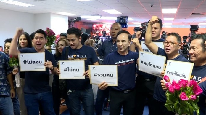 None of the FFP members were present at the courtroom.  A large crowd of supporters and party executives followed the televised verdict reading at the party’s headquarters in the Thai Summit Building, which belongs to Thanathorn’s family.