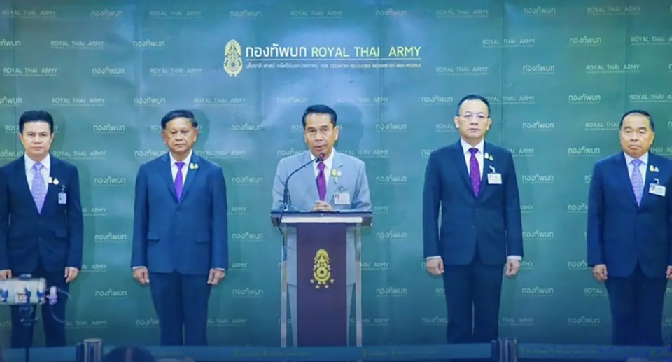 The first mobile meeting of the Ministry of Defense at the Royal Thai Army Headquarters has resolved that direct units of the Ministry and all military branches vigilantly monitor and intercept illegal activities that impact border security, both on land and at sea.
