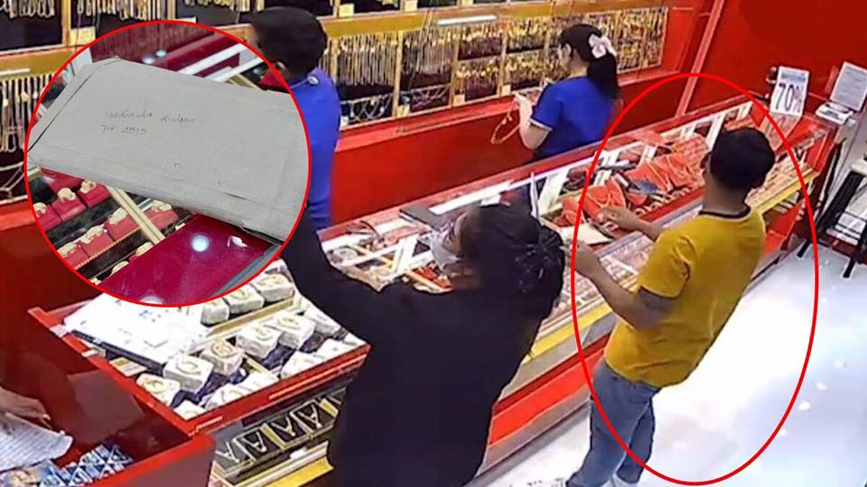 According to the shop staff, the man initially posed as a customer, asking to see gold and inquiring about prices. He requested to try on a gold ring, weighing one baht and valued at approximately 45,000 baht. While appearing to inspect the ring, the thief handed the staff a brown envelope, which he implied contained money.