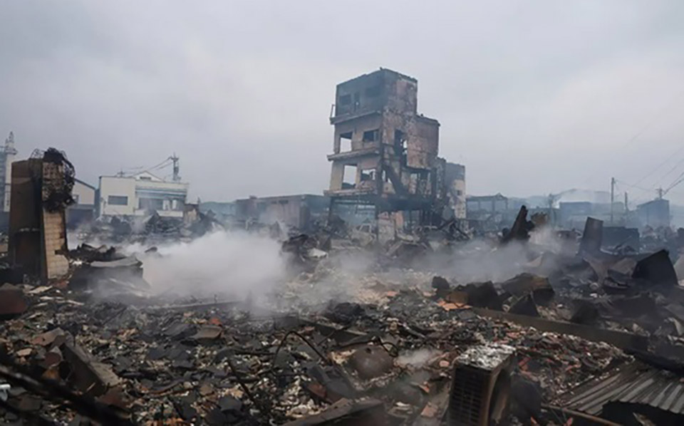In Wajima city, one of the worst-hit areas, early aerial surveys revealed large fires and smoke engulfing streets with destroyed buildings. Approximately 200 buildings are believed to have burned down in the popular tourist area of Asaichi Street in Wajima, and 25 buildings, including houses, have collapsed with potential people trapped inside.