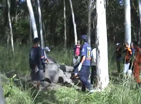 The Sawang Boriboon Foundation who often are called upon to help people injured in road accidents and even the odd escaped crocodile were asked to come to the assistance of a far bigger animal on the 23rd of October – an elephant named ‘Phungbunma’ in an area vegetated with Eucalyptus not far from the Maaprachan reservoir.