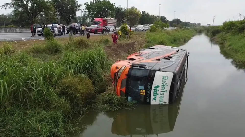 AYUTTHAYA, Thailand – An employee shuttle bus veered off the road and crashed into a roadside ditch along the northbound Asia Highway in Ayutthaya Province, injuring 21 people on April 7. Authorities suspect the driver may have fallen asleep at the wheel. The driver has not yet been located.