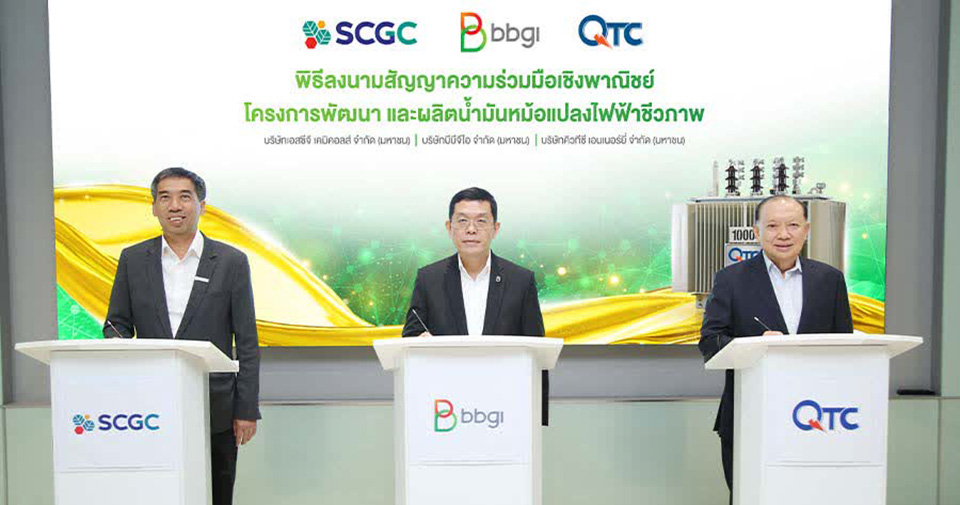 BBGI Plc, SCG Chemicals Plc, and QTC Energy Plc have signed a commercial collaboration agreement to develop and manufacture bio-based transformer oil, marking the first production trial of its kind in Thailand.