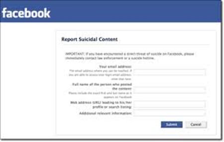 Facebook creates the function to help people who are likely to commit a suicide. This feature prevents facebook users both with computers and mobile from suicide by cooperating with various suicide preventing sectors in USA and providing optional feature that will be able to tell that the user is in need of help.
