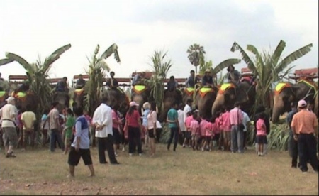 Local residents joined the feast by bringing food and other fruits for the jumbos, creating a festive atmosphere and lots of fun for Thais and farang (foreign) tourists alike.