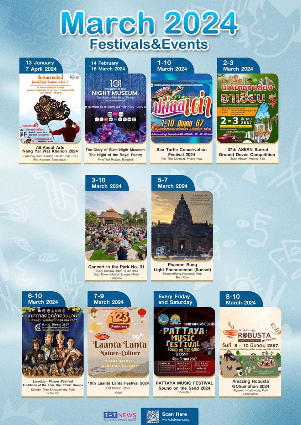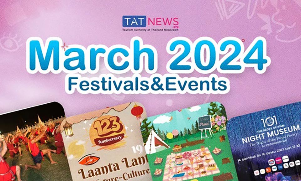 We have selected 21 festivals and events happening in March 2024 as a guideline for travellers to Thailand to plan their trip. During the month, should there be any other interesting events coming up, we will provide updates via our social media (Facebook: TATNews.org and X: @Tatnews_Org).