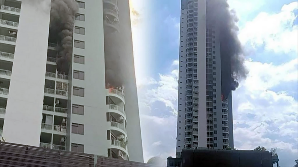 Residents flee in panic as fire erupts on the 33rd floor of a Pinklao high-rise condo.
