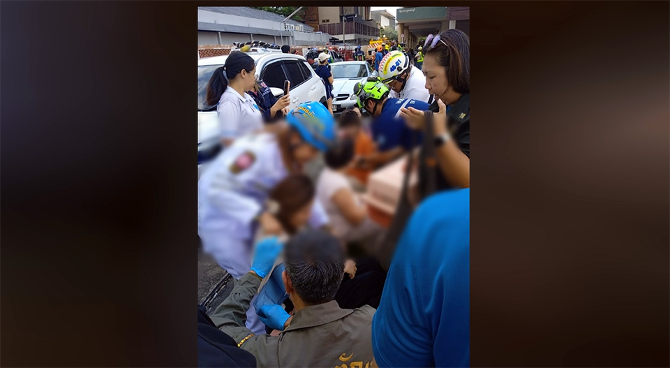At 2:03 p.m., the building’s management contacted the Bangkok Radio Center via hotline 199, reporting a fire inside one of the units on the 33rd floor. Thick black smoke was seen billowing from the floor and emerging outside the building. Condo staff immediately began evacuating residents to the ground level.