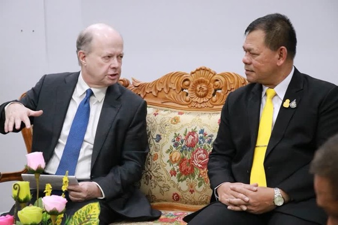 Secretary-General of the SBPAC Rear Admiral Somkiat Ponprayoon and Ambassador Jacques Lapouge discussed the various missions of the SBPAC in improving the quality of life of the local people, using the principle of a triangle of stability, prosperity, and sustainability, building peace and promoting the role of women in society.