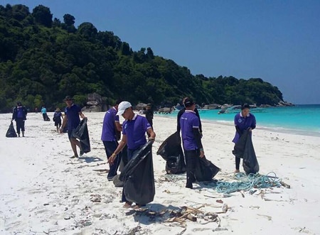The Sea Turtles Conservation Center of the Royal Thai Navy has made an effort to clean up Ko Huyong, which is part of the Mu Ko Similan National Park. In addition the diving operation, the center’s employees have been deployed to remove garbage from the beaches.
