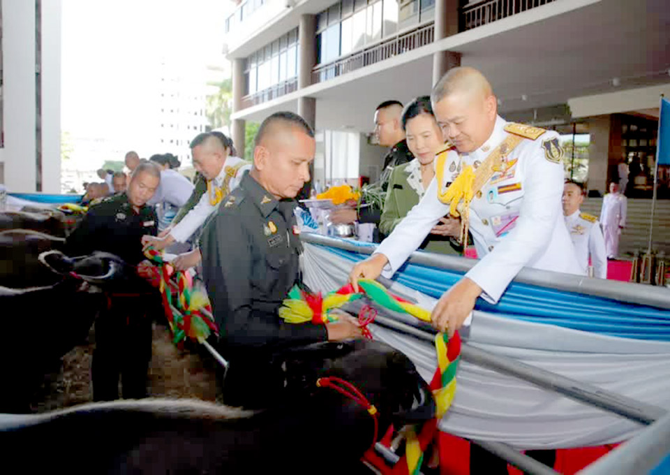 The Royal Thai Army Commander in Chief Gen Narongpan Jitkaewthae presided over an alms-giving ceremony and religious services, in celebration of the 91st birthday of Her Majesty Queen Sirikit, the Queen Mother, at the Royal Thai Army Headquarters. The Royal Thai Army on this occasion delivered six livestock animals to the Department of Animal Army and other items to the Veterinary Army School in Nakhon Nayok province.