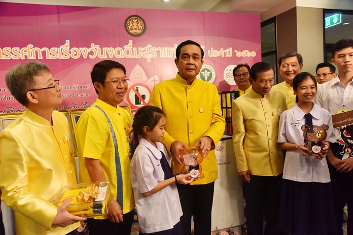 Before the cabinet meeting started on Tuesday (July 3) at Government House, Bangkok, the Deputy Prime Minister, Gen. Chatchai Sarikulya, the Public Health Minister, Dr. Piyasakol Sakolsatayadorn, the Director-General of the Department of Disease Control, Dr. Suwannachai Wattanayingcharoenchai, and the Manager of ThaiHealth, Dr. Supreeda Adulyanon, led a team of staff to meet the Prime Minister, Gen. Prayut Chan-o-cha, to present a campaign to promote alcohol abstinence during the Buddhist Lent this year.