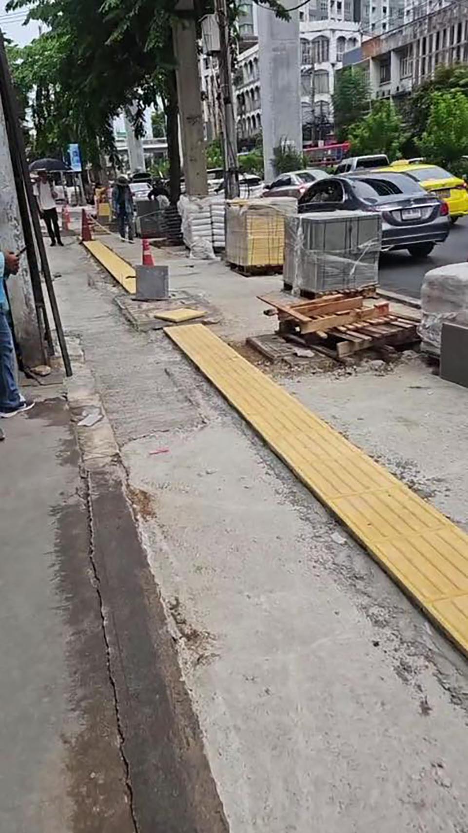 The renovation covers both sides of Lat Phrao Road, totaling 20 kilometers. It aims to improve the entire sidewalk, ensuring it is safe and walkable. The project has been underway for five days and is being built according to Bangkok Metropolitan Administration (BMA) standards, incorporating Universal Design principles to ensure accessibility for everyone.