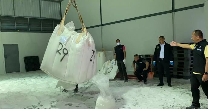 Deputy national police chief, Pol. Gen. Manu Mekmok said the raid at the warehouse last night found 300 kg of ketamine. The police expanded investigation to seize 228 kg of heroin at a house in Bangkok’s Ratchadapisek area.