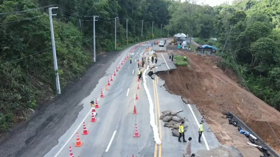 Governor of Loei, Chaiphot Jarupong, along with related agencies, has surveyed the damage and requested traffic management and warning signals for public safety. The Director of the Loei Highway District 2 (Dan Sai) explained that continuous heavy rain had caused significant water runoff at a road construction site, leading to soil subsidence. Initially, sheet piles have been installed to prevent further landslides, and additional signals have been placed to prevent accidents.