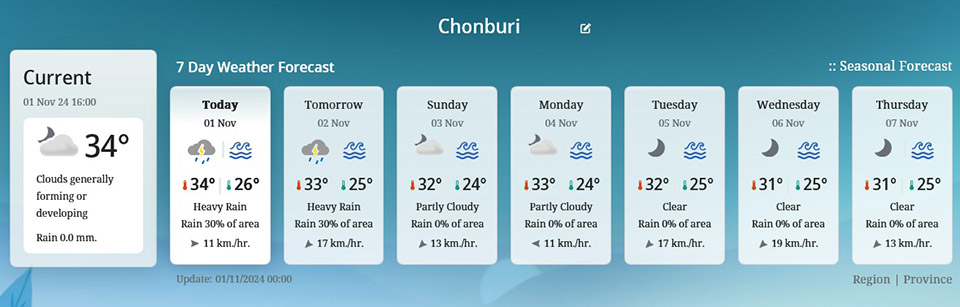 7 Day Weather Forecast in Chonburi.