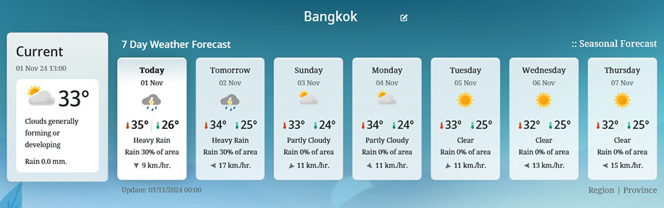 7 Day Weather Forecast in Bangkok.