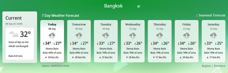 7 Day Weather Forecast in Bangkok.