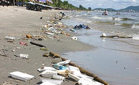 Up to 10 tons of waste and garbage are washed up on the shores of Bang Saen beach each year – making it necessary for officials to start the clean up from as early as 5 am each morning in order to prepare the beach for tourists.