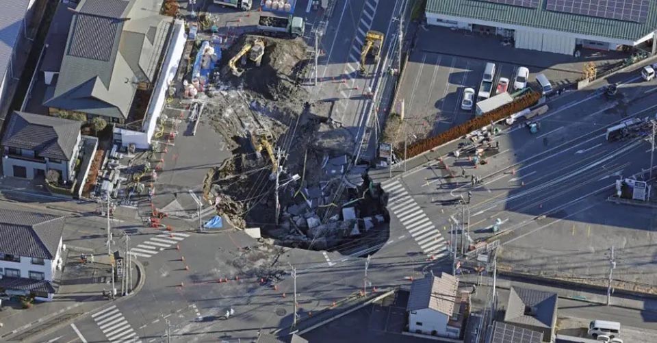 Japan adopts new rescue method to save man trapped in expanding sinkhole