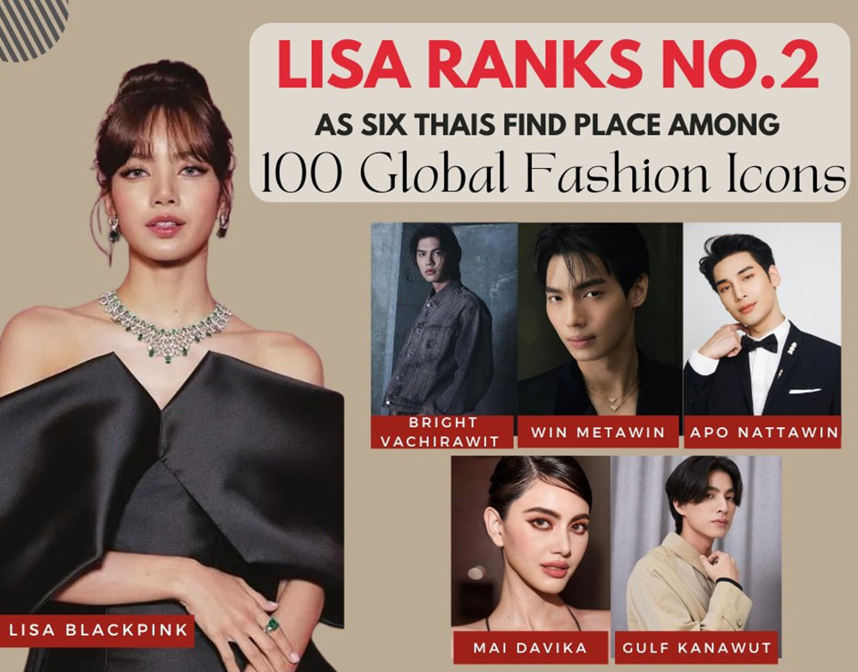Six Thai celebrities have been named in Global Choice’s ‘100 Global Fashion Icons of 2023’, based on votes from audiences around the world on people who are top influencers.