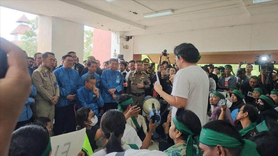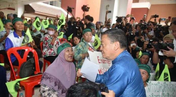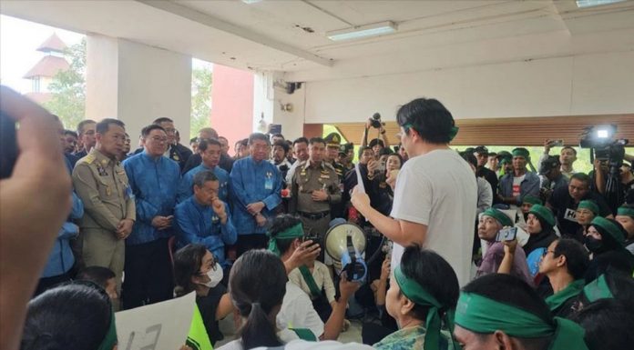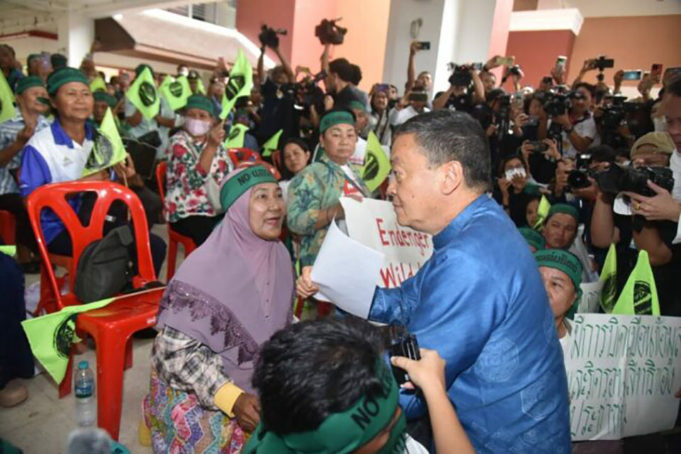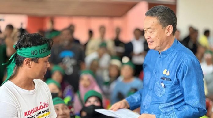 After the conclusion of the cabinet meeting in Ranong, the prime minister traveled to Suan Sunandha Rajabhat University, Ranong campus, to receive a petition opposing the construction of the Land Bridge project from the local community network “Rak Pha To,” in Chumphon Province.
