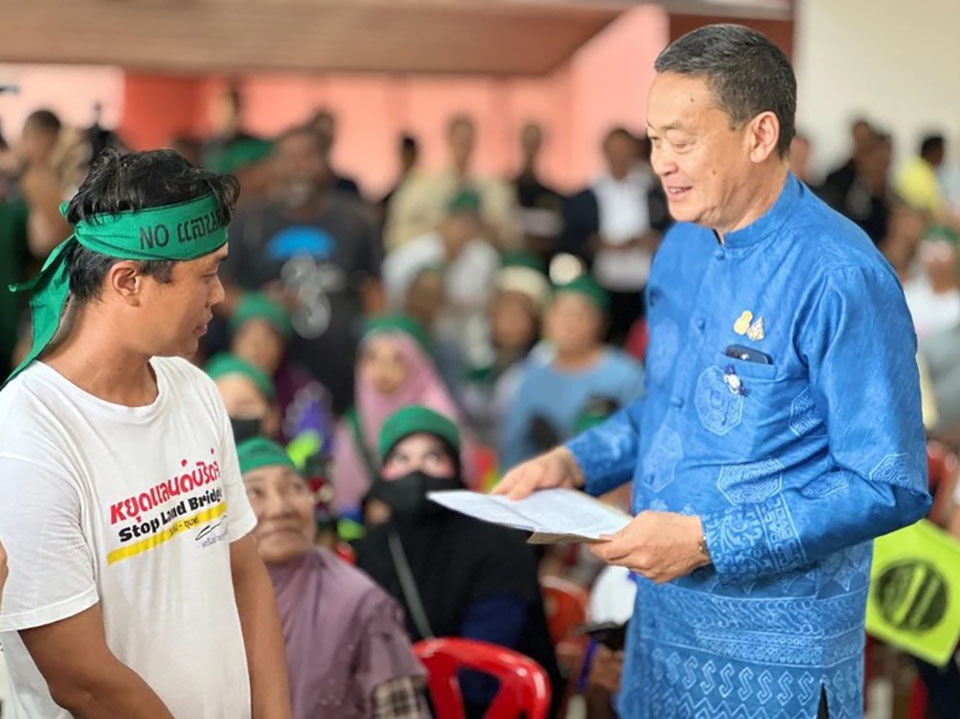 Prime Minister Srettha Thavisin affirmed consideration of the Land Bridge project from all aspects after receiving a petition from a local network, opposing the project and calling for a review on the results of the project study.