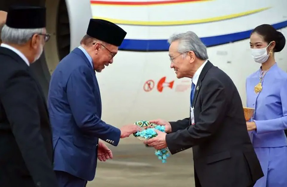 Malaysian Prime Minister Anwar Ibrahim arrived in Bangkok for an official visit to Thailand as guests of the Thai government during February 9-10, as part of introductory tour to ASEAN countries.