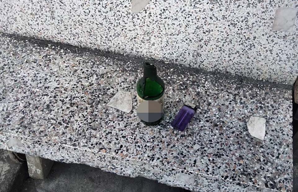 Police from Phetkasem Police Station found an alcohol bottle filled with flammable liquid at the scene, while the suspect fled immediately.