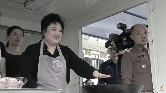 At Sanam Luang field, large crowds from the general public had queued up to receive sticky rice and fried chicken that was personally cooked by Her Royal Highness Princess Soamsawalee.