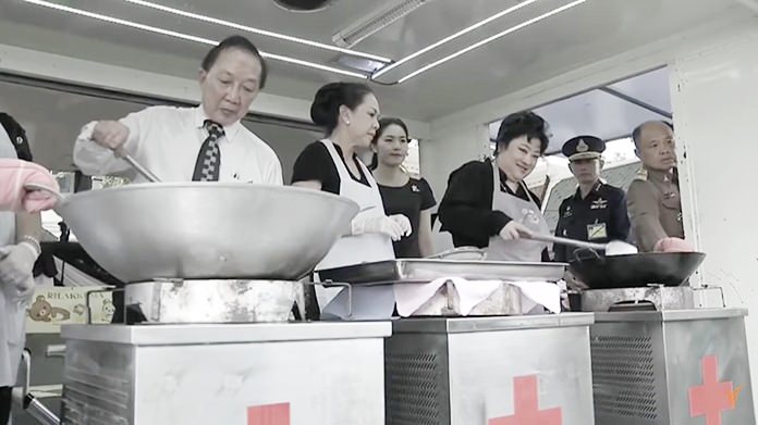 People from across the country arriving in Bangkok not only have the chances to pay their last respects to the beloved late HM King Bhumibol Adulyadej in front of the royal urn inside the Dusit Maha Prasat Throne Hall at the Grand Palace, but also have the opportunities to eat food prepared and cooked by, and receive medicines from, members of the Royal Family.