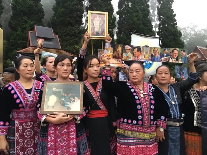 Chiang Mai – Over 400 Mhong hill tribe people residing on Doi Pui mountain in Chiang Mai province, traveled on foot Thursday to take part in a sandalwood flower laying ceremony for His Majesty the late King Bhumibol Adulyadej as a sign of remembrance of His Majesty’s care.