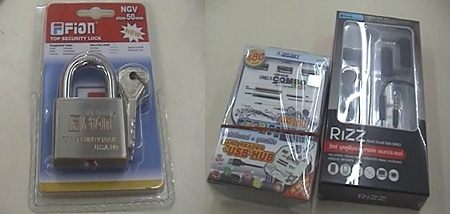 The police were presented with the items that the monk had stolen a padlock, a memory card reader and an ear piece for a mobile phone worth a total value of 547 baht.