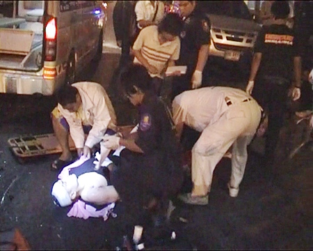 Dennis Monnier, 45, and girlfriend Amornrat Satrakom, 38, were injured in the crash. They were treated at the scene by Sawang Boriboon Foundation medics.