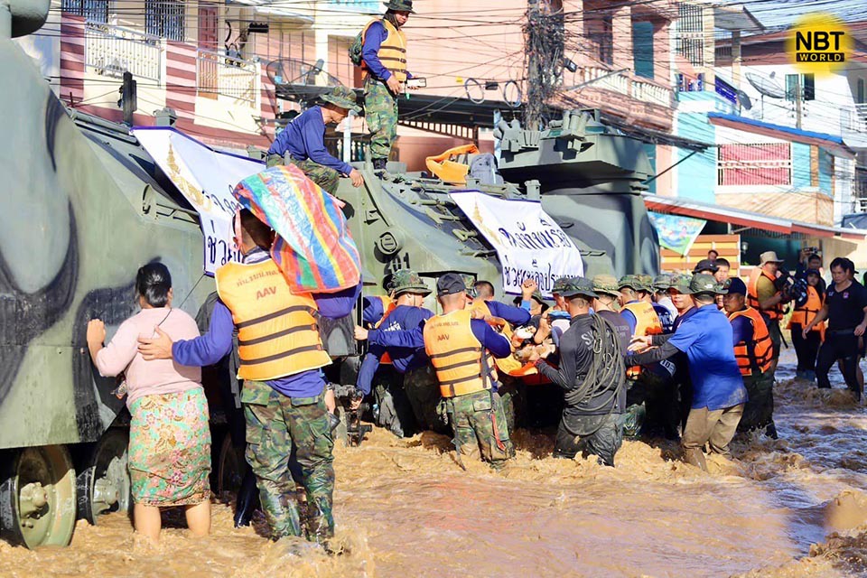 CHIANG RAI, Thailand – The Royal Thai Navy’s Disaster Relief Unit has deployed personnel and two amphibious vehicles to assist flood-hit residents in Mai Lung Khon and Mae Sai districts in Chiang Rai province. Food and water were delivered to those affected by severe flooding, which submerged vehicles and hindered relief efforts. To facilitate stranded residents’ evacuation and improve rescue teams’ access, the amphibious vehicles were positioned to block water flow and ensure safer conditions.