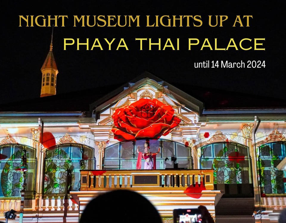 Phaya Thai Palace, also known as Wang Phaya Thai, is holding “The Glory of Siam Night Museum: The Night of the Royal Poetry” until 16 March 2024, from 18.00 to 21.30 hr, to celebrate the 101st anniversary of the palace.