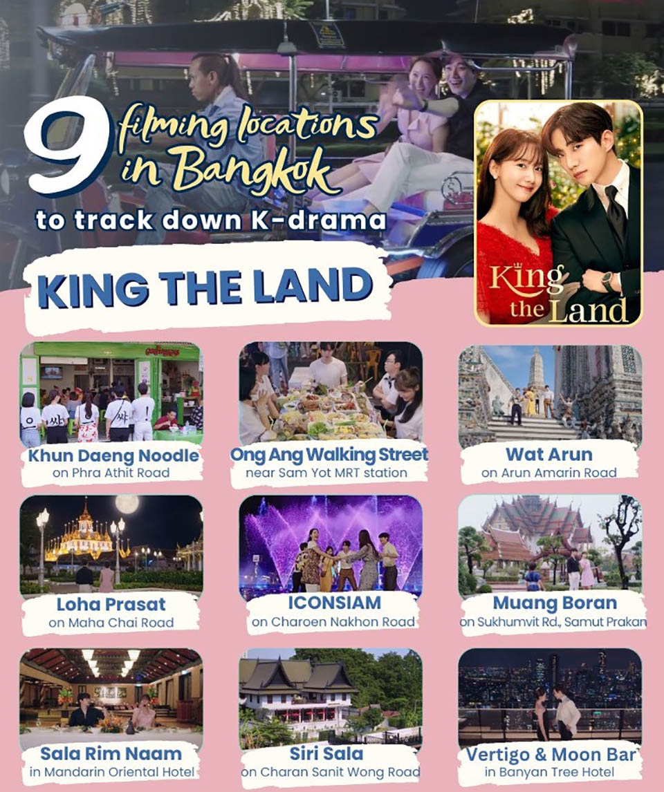 The series was filmed in Thailand earlier last year, and its entire tenth episode is dedicated to showcasing various attractions in Bangkok and its outskirts. The Thailand Film Office (TFO), a unit under the Department of Tourism, invites tourists to experience a culinary journey and explore the charming locations portrayed in the series, listed here: