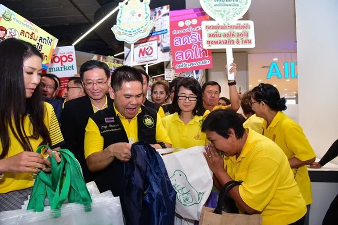 SUPHANBURI  – Starting this month, Thai people must now change their behaviour when going shopping as no single-use plastic bags of less than 36 microns will be given to shoppers by the stores. So don’t forget to take your own fabric bags to carry your purchased items.