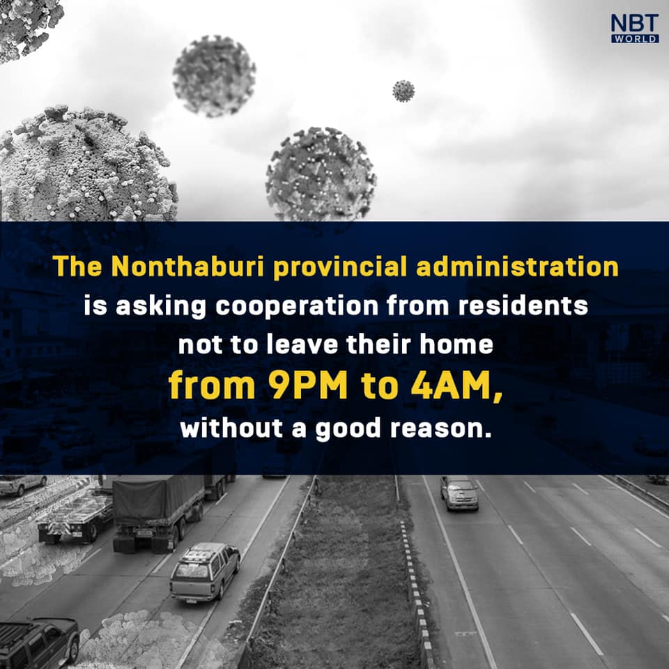 Nonthaburi, a province neighboring to Bangkok is asking cooperation from residents not to leave their home from 9pm to 4am, without a good reason.
