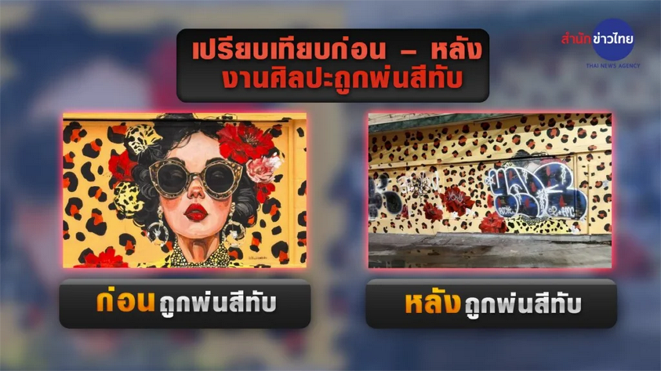 Governor Chadchart condemned the graffiti attack on Carolina Adan Caro’s artwork, urging police to pursue remaining suspects and citizens to help protect Bangkok’s creative spaces.