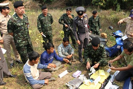 The Deputy Chief said the Task Force joined with Mae Sai Police and authorities to investigate the area on March 10, 2016. After a gun battle police found one suspect dead and and arrested three more. They found 212,012 methamphetamine or Yaba tablets and a loaded 9mm handgun.