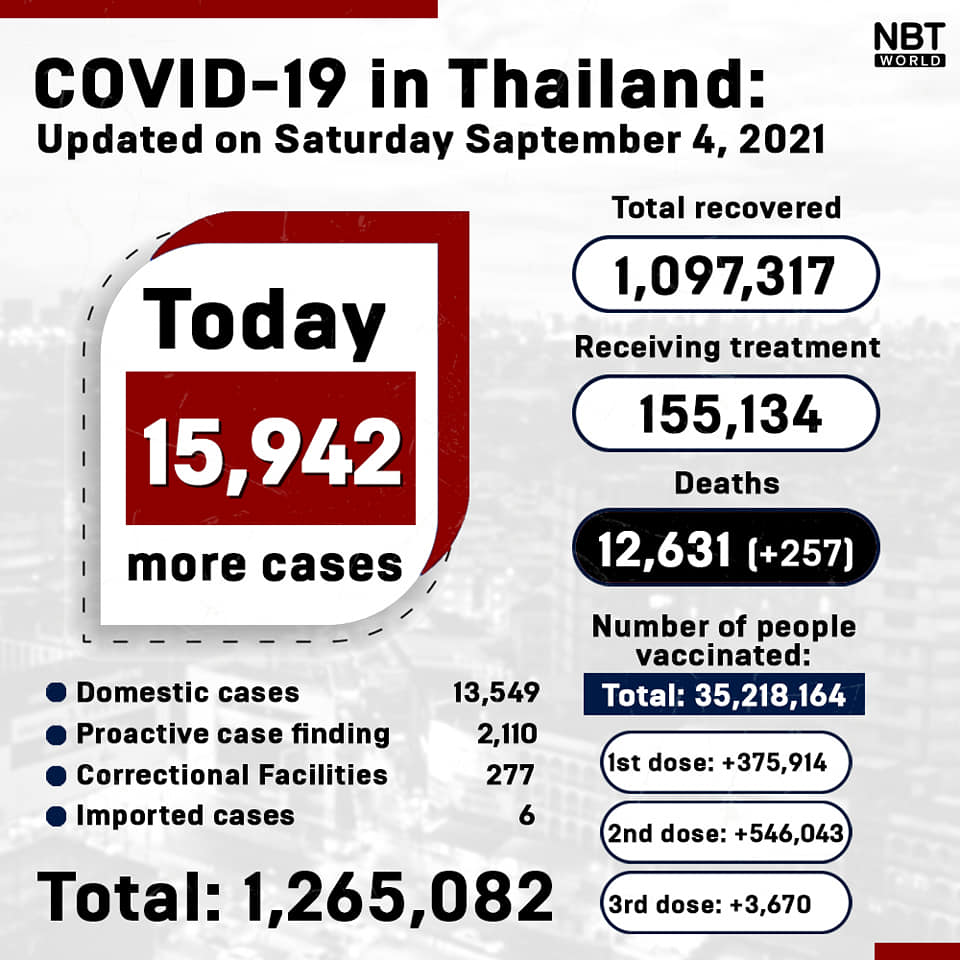 Official COVID-19 update in Thailand on Saturday, 4 September 2021.