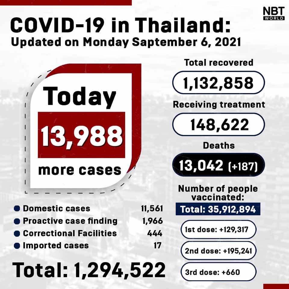 Total: 35,912,894* 1,294,522 people infected (+13,988)